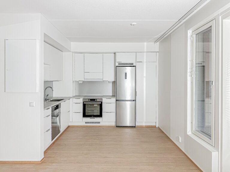 Kodissa on avara olohuone ja keittiö, jossa laadukkaat kodinkoneet tekevät ruoanlaitosta helppoa. Viilennys pitää asunnon miellyttävänä myös lämpiminä päivinä. Ihanan suuri lasitettu parveke yhdistettynä omaan terassiin tarjoaa runsaasti tilaa oleskeluun ja yhdessäoloon.