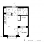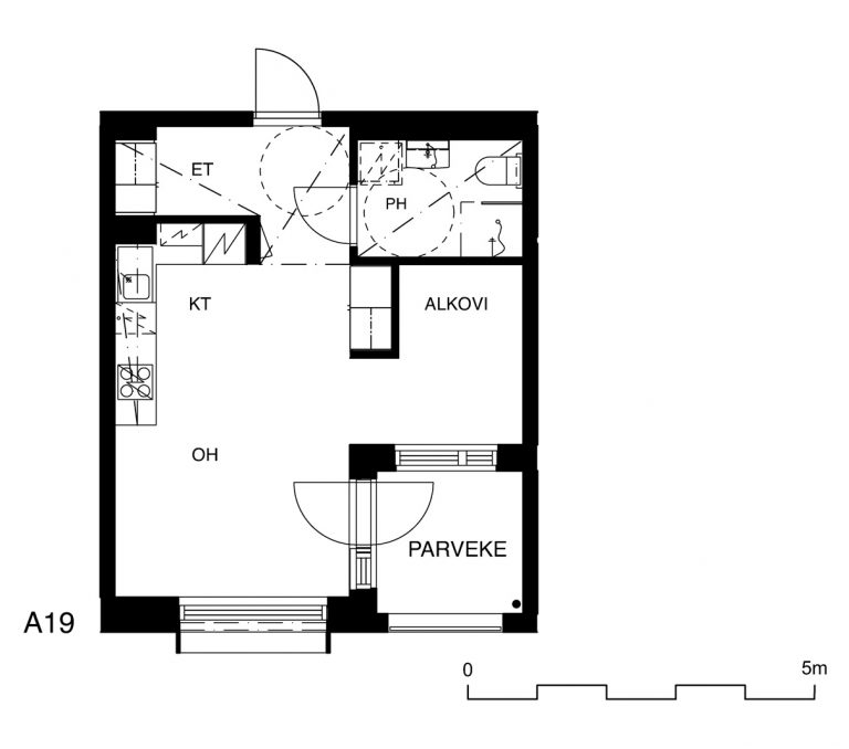 Tilava neljännen kerroksen yksiö erillisellä alkovilla.