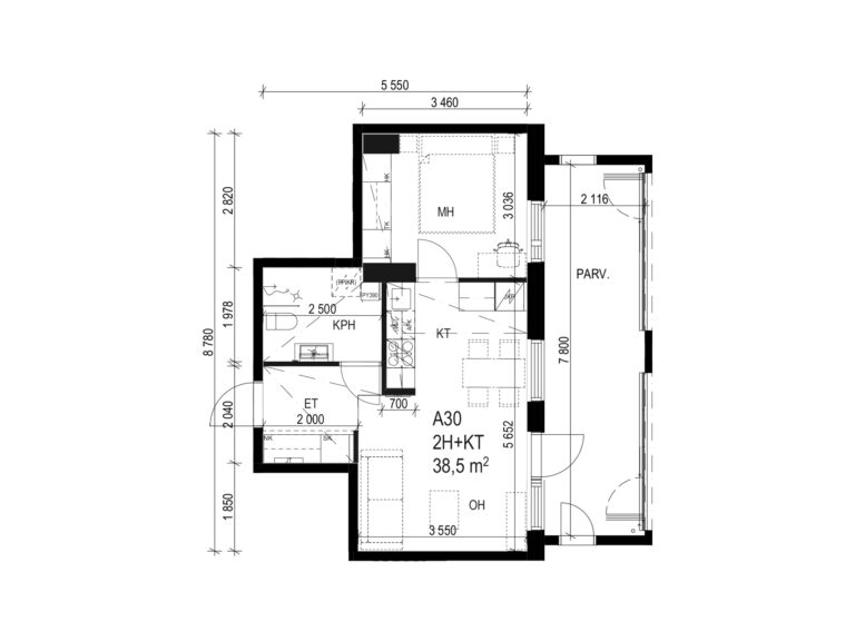 Huoneistotyyppi: 2h+kt+lasitettu parv