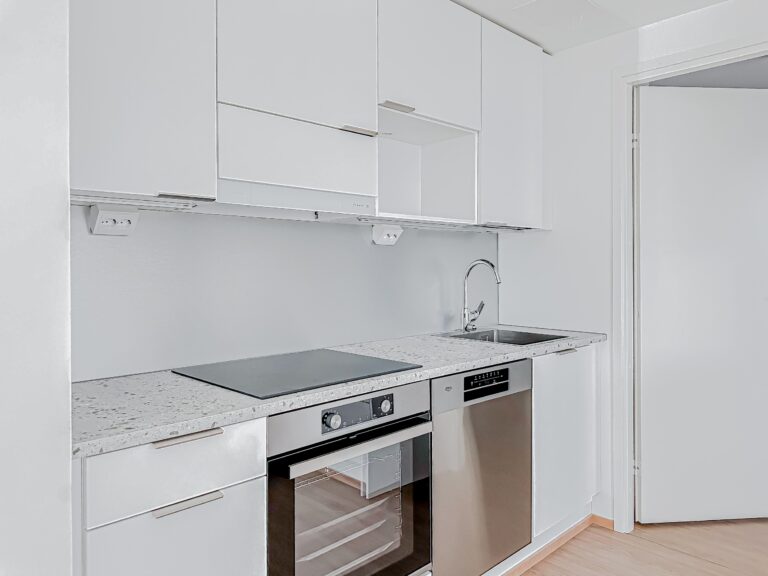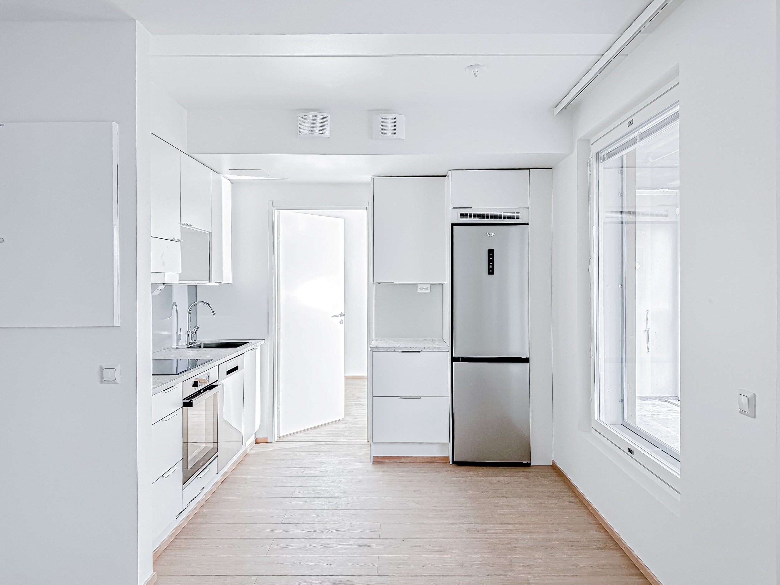 Tyylikäs uudiskaksio, jossa on avara pohjaratkaisu ja laadukkaat pintamateriaalit. Keittiössä on modernit kodinkoneet ja tilava lasitettu parveke kutsuu nauttimaan ulkoilmasta. Asunnossa on myös viilennys.