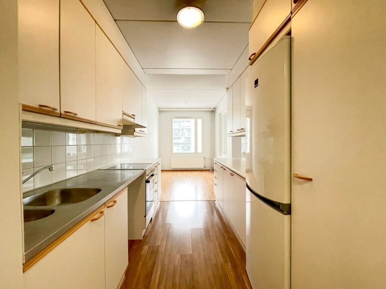 Vapautumassa ylimmän kerroksen tilava läpitalon kolmio rauhalliselta Tampellan alueelta. Ilmoituksen kuvat ovat mallikuvia taloyhtiön lähes vastaavasta kolmiosta, materiaalit saattavat erota.