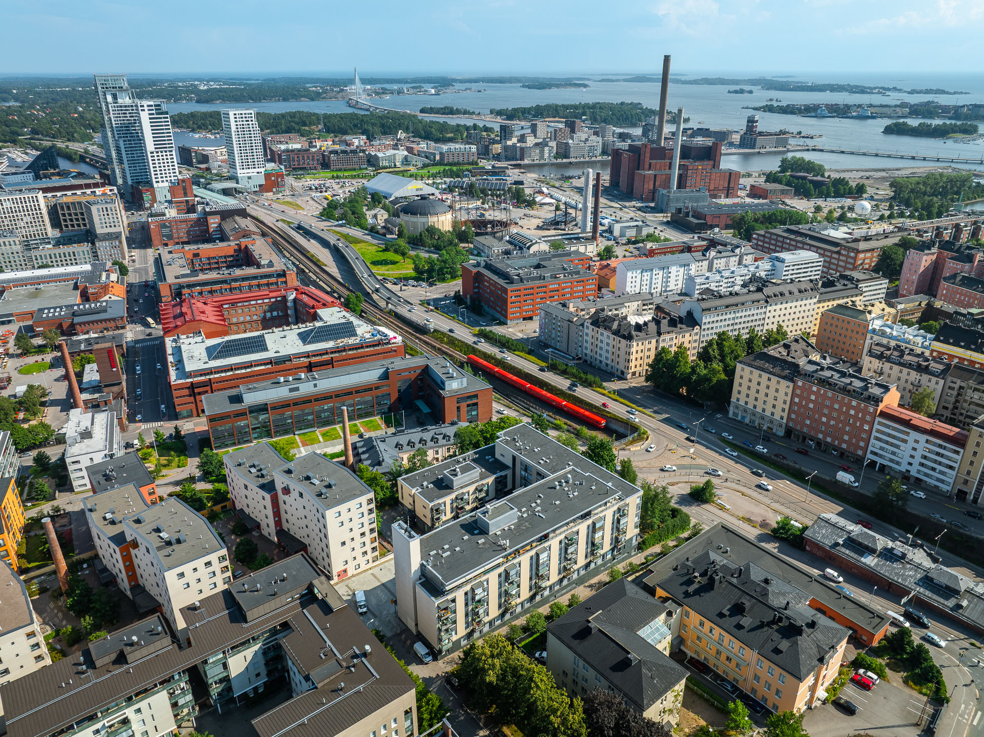 Koti 55 -vuotta täyttäneelle kuudennessa kerroksessa näkymin Kalasatamaan päin.