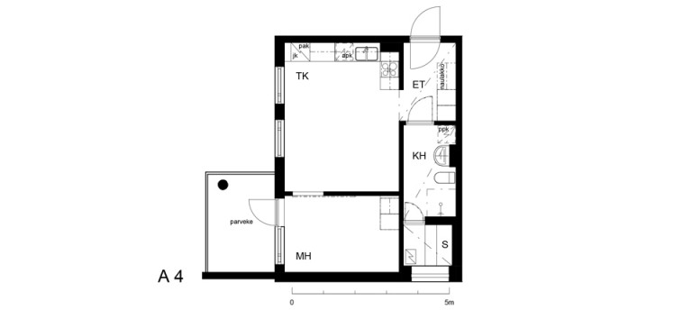 Huoneistotyyppi: 1 h + tupak + s + p