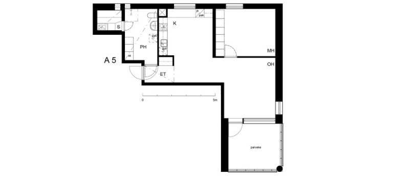 Tässä toisen kerroksen kodissa on tilavat huoneet ja lasitettu parveke. Asunnossa oma sauna.