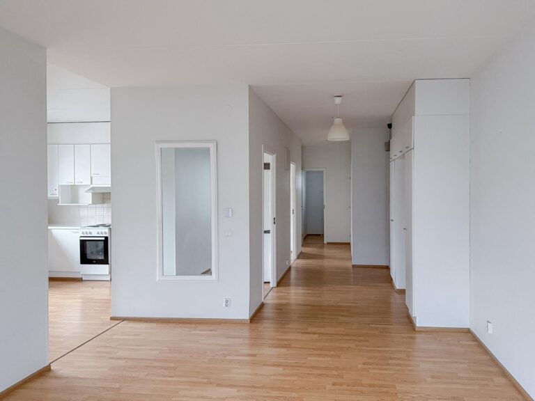 Tilava perhekoon koti kolmannessa kerroksessa odottaa uusia asukkaita. Käytännöllinen läpitalon pohjaratkaisu talon päädyssä, oma sauna ja runsaat säilytystilat luovat mukavat puitteet viihtyisään perhearkeen.