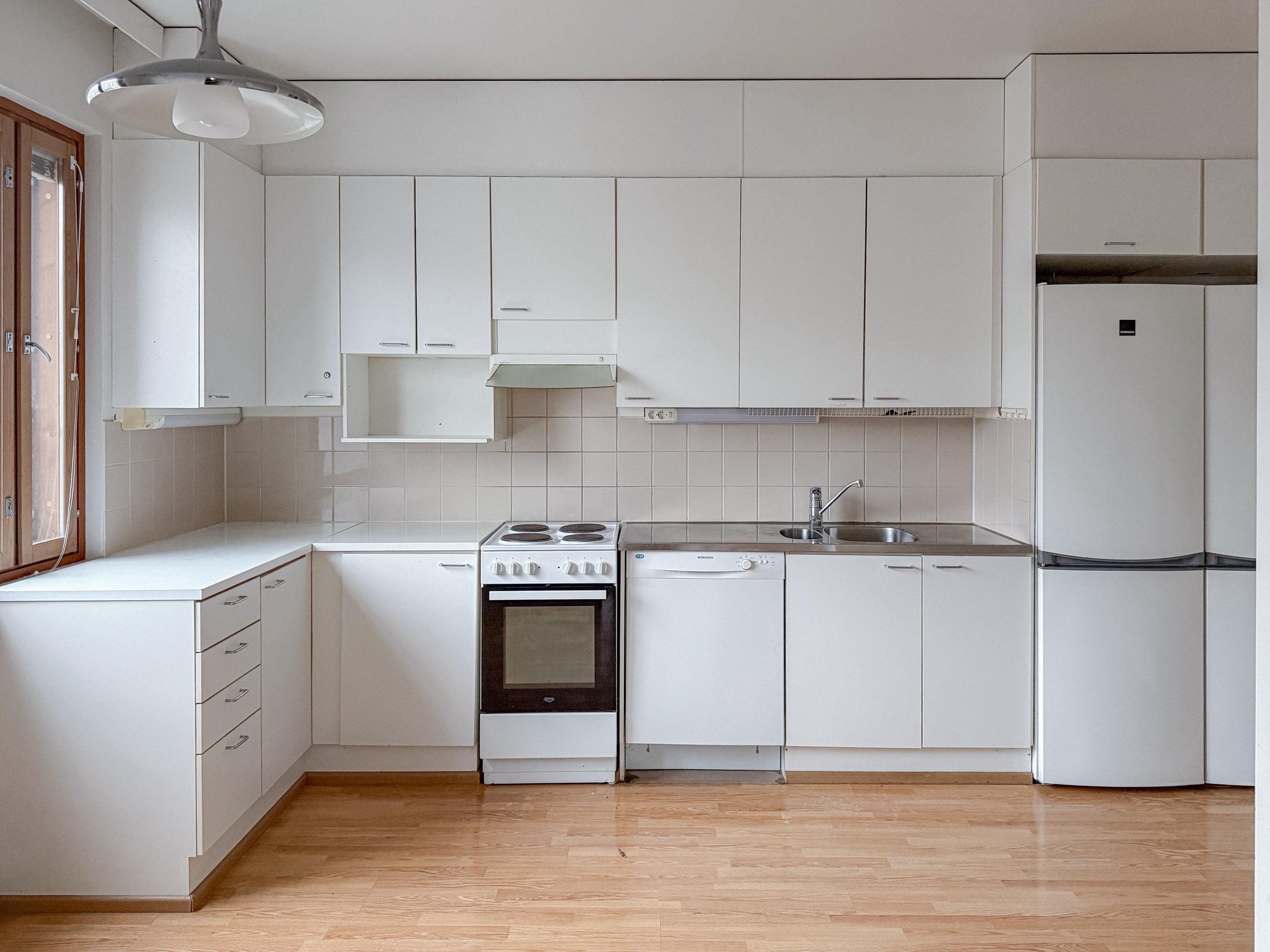 Tilava perhekoon koti kolmannessa kerroksessa odottaa uusia asukkaita. Käytännöllinen läpitalon pohjaratkaisu talon päädyssä, oma sauna ja runsaat säilytystilat luovat mukavat puitteet viihtyisään perhearkeen.