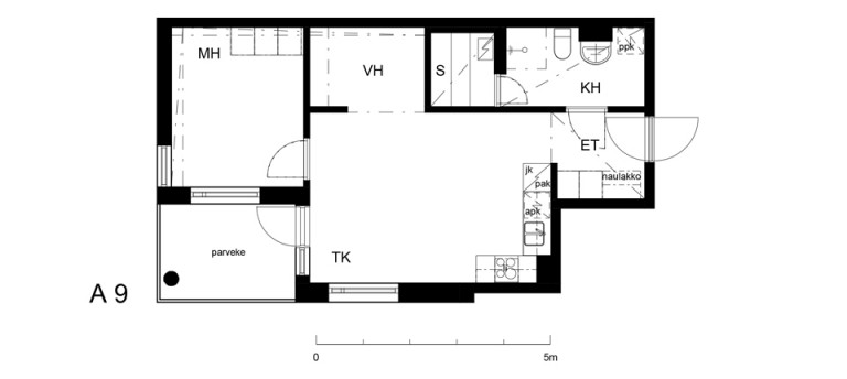Yhtiöjärjestyksen mukainen huoneistotyyppi on 1h+tupak+s+p.
