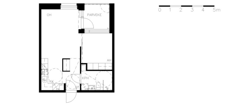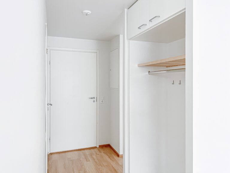 Kaksio, jonka toiminnot on kivasti rytmitetty eri osioihin. Liukuovi makuuhuoneeseen säästää hyvin tilaa ja lasitettu parveke rauhalliselle Juutinraumankadulle tuo lisäneliöitä pitkälle vuoteen. Ilmoituksen kuvat ovat vastaavasta kodista muutamia kerroksia ylempää.