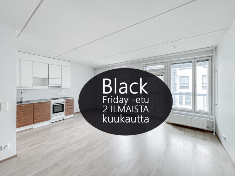 Etusi tähän kotiin: Saat vuoden 2026 marras- ja joulukuun ilmaista asumisaikaa, kun sopimuksesi alkaa viimeistään 1.1.2026. Etusi edellyttää 12 kk:n sitoutumista, jossa ensimmäinen mahdollinen irtisanomisaika on 11 kk:n kuluttua sopimuksen alkamisesta. Etu on voimassa 1.12.2025 asti uusille asukkaille, uusiin vuokrasopimuksiin. Etu ei koske käyttökorvausmaksuja (kuten esim. vesimaksut ja mahdollinen autopaikka). Koti on mahdollista vuokrata myös ilman kampanjaa.
