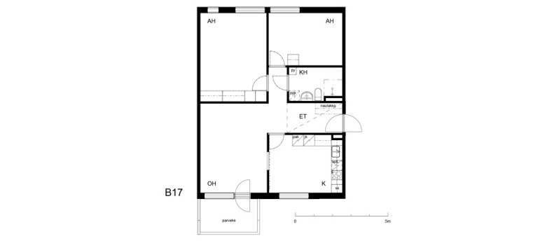 Huoneistotyyppi: 3h+k+lasitettu parv
