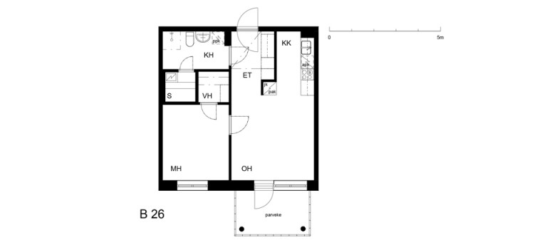 Etsitkö tilankäytöltään selkeää kotia? Tässä kaksiossa on neliöt kohdillaan. Asunnossa on avara olohuone avokeittiöllä varustettuna, oma sauna lämpiää itselle sopivan aikataulun mukaan ja vaatehuone makuuhuoneen yhteydessä tuo ryhtiä ja selkeyttä säilytyspulmiin.