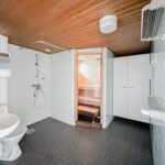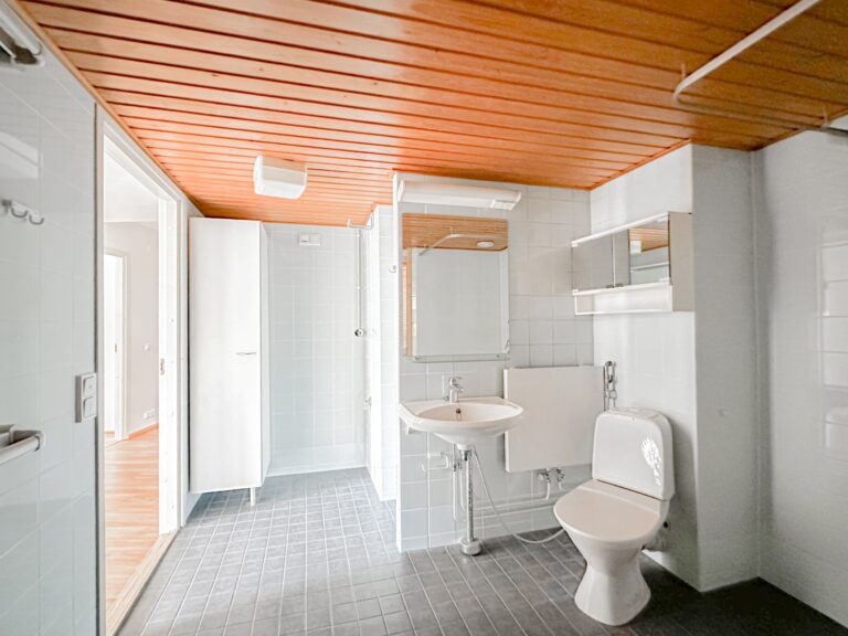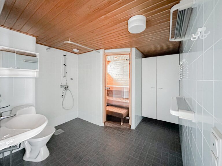 Tässä kodissa perhearkea helpottavat kaksi wc:tä ja säilytystilaa löytyy kaapistojen lisäksi toisen makuuhuoneen yhteydessä olevasta vaatehuoneesta.