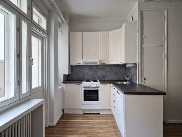 Ihana parvekkeellinen yksiö sisäpihanäkymin. Aktiivinen kokkaaja voi ilahtua kodin astianpesukoneesta ja kaappitilasta. Kylpyhuoneeseen mahtuu oma pesukone.