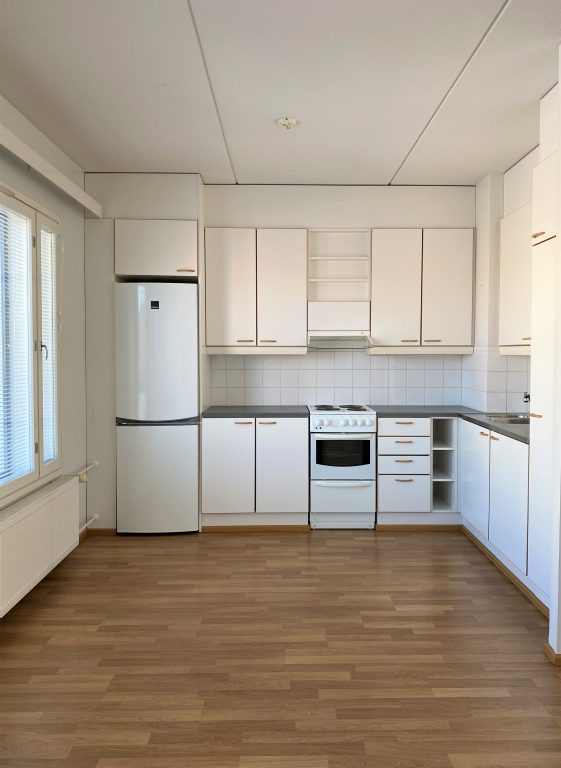 Siisti toisen kerroksen saunallinen kaksio. Keittiön varustukseen kuuluu astianpesukone. Vakuus 0 €. Autohallipaikka saatavilla hintaan 65 €/kk.