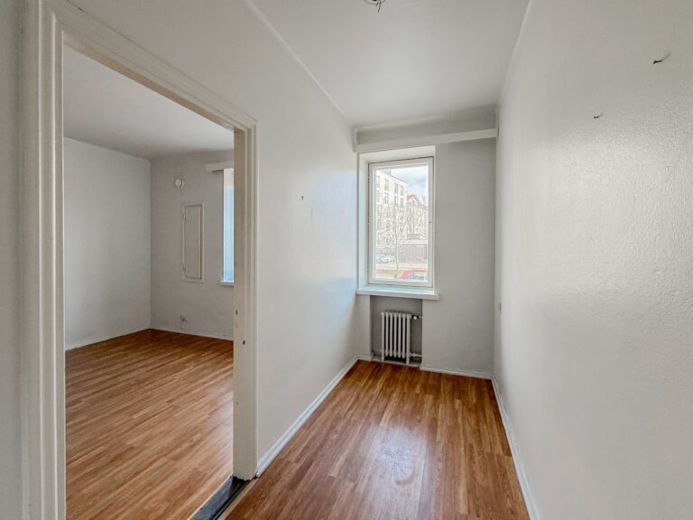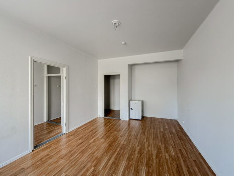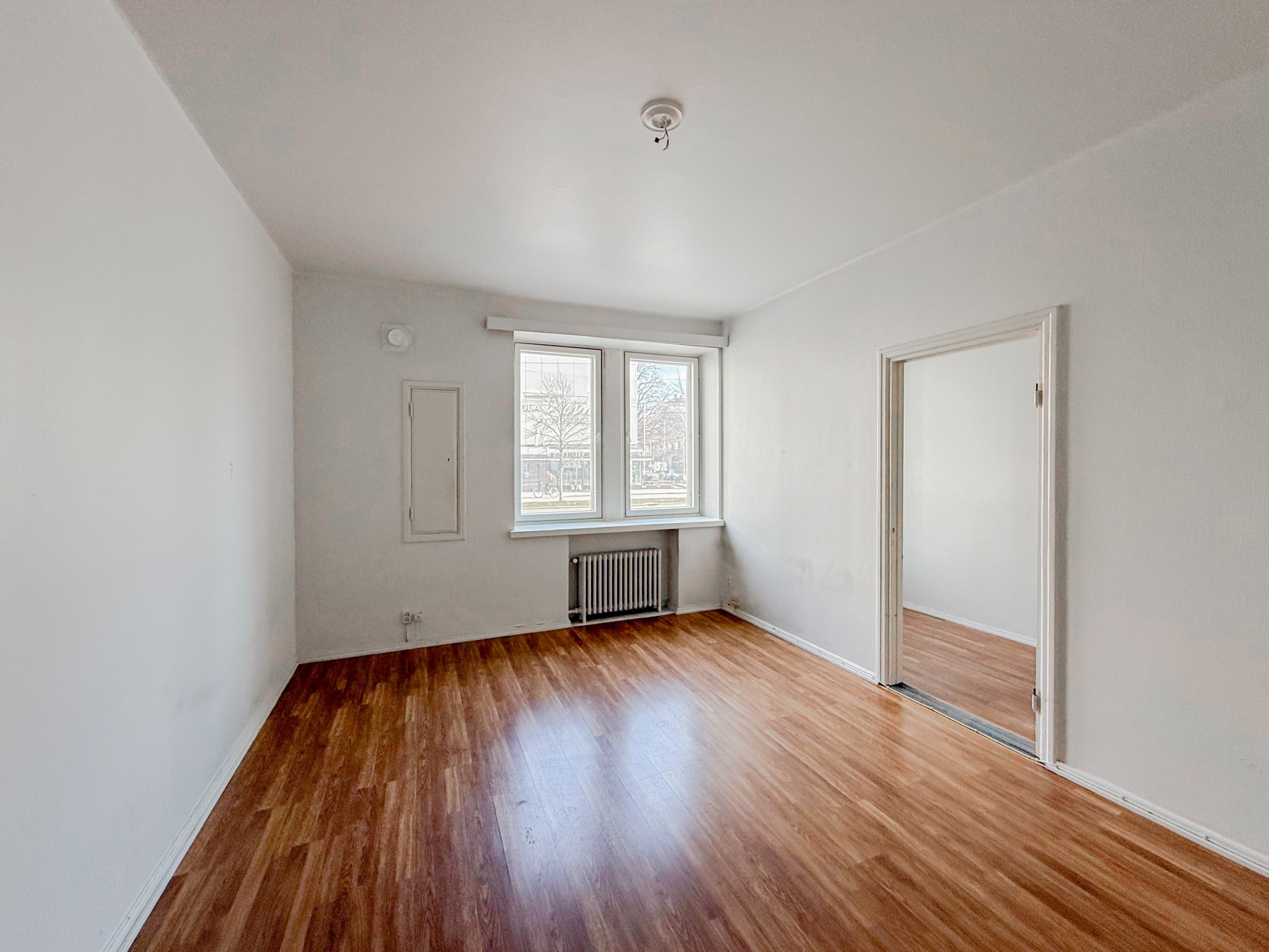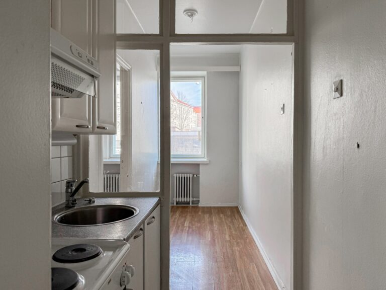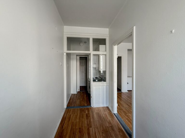 Ensimmäisen kerroksen kaksio hyvien kulkuyhteyksien äärellä.
