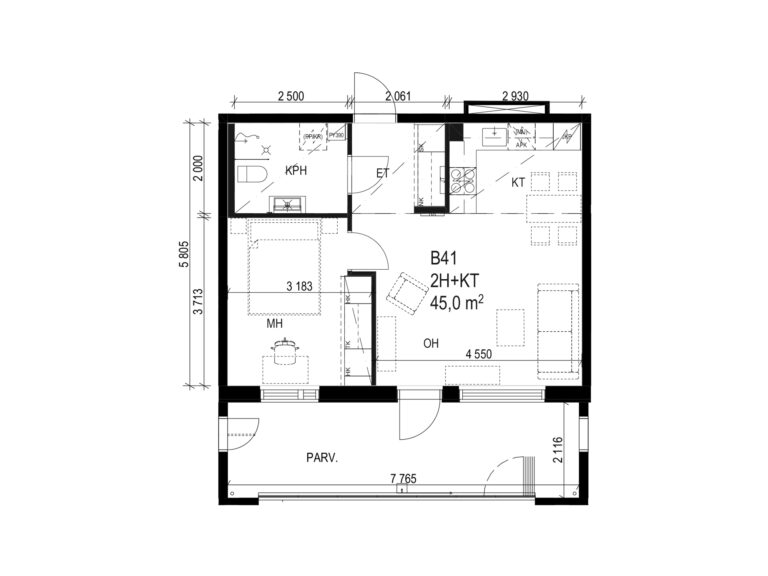 45 m2, 890 €/kk, 2h+kt+lasitettu parv, kerrostalo, Helsinki, Konala