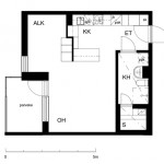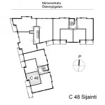 Ilmoituksen kuvat ovat vastaavasta kodista sisäpihanäkymillä. Tämä koti sijaitsee kerroksessa kolme ja näkymä on Tanssintalon suuntaan. Asunnossa on astianpesukone.