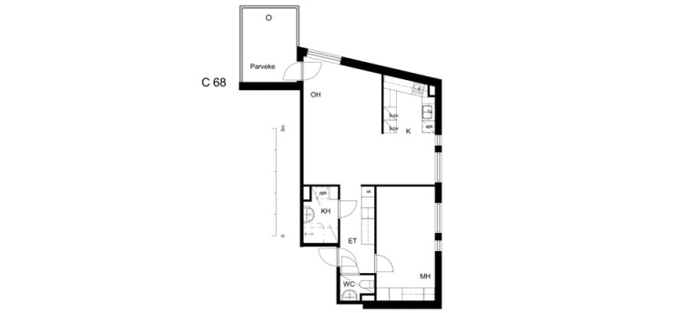 Huoneistotyyppi: 2h+k+lasitettu parveke
