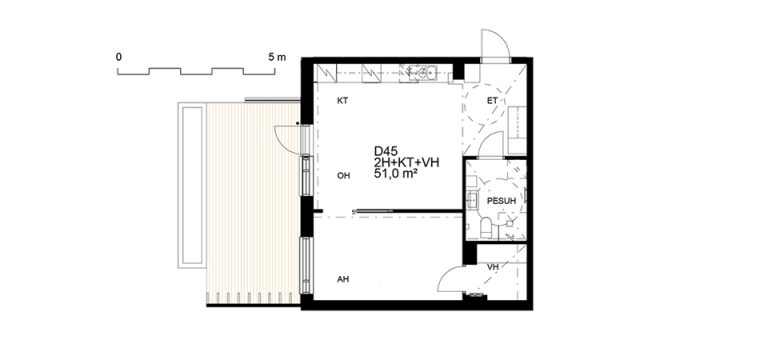 Tilava ensimmäisen kerroksen kaksio, jossa on mukavasti säilytystilaa vaatehuoneen ansiosta ja avara pohjaratkaisu.