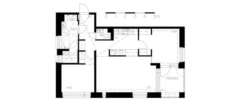 Viidennen kerroksen koti merinäkymin (ilmoituksen kuvat vastaavasta kodista alemmista kerroksista). Valoisa läpitalon kulmahuoneisto.