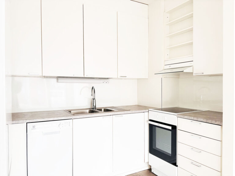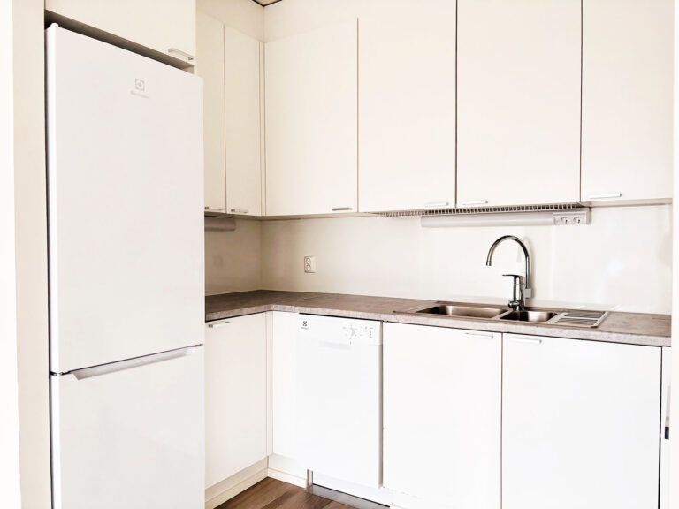 - Hyvin varusteltu keittiö, jossa jääkaappi/pakastin, induktioliesi ja astianpesukone.