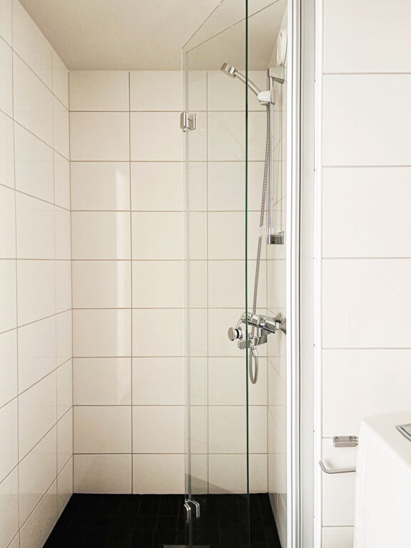 - Täysin remontoitu kylpyhuone, joka on kokonaan laatoitettu.