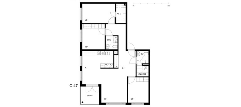 Perhearkeen sopiva pohjaratkaisu. Oma sauna lämpenee itselle sopivan aikataulun mukaan. Viihtyisät puitteet viimeistelee lasitettu parveke Aurajoen suuntaan.