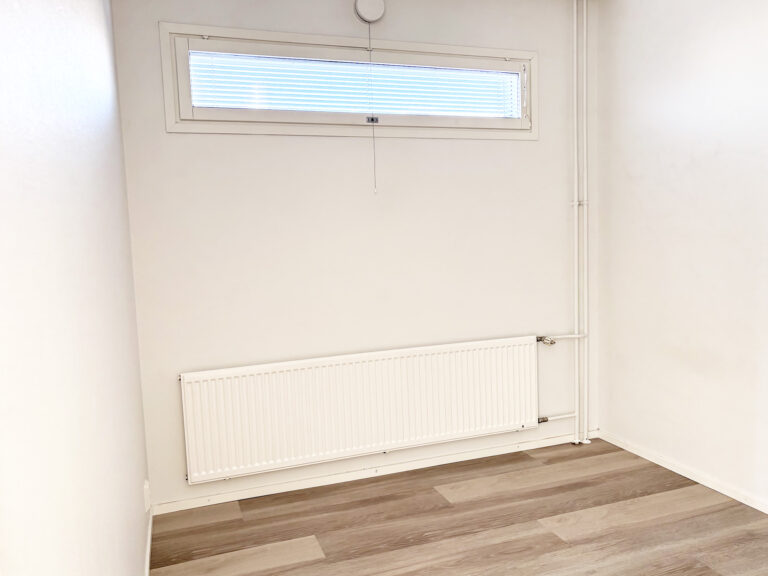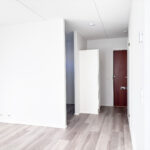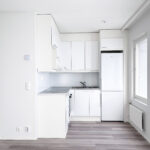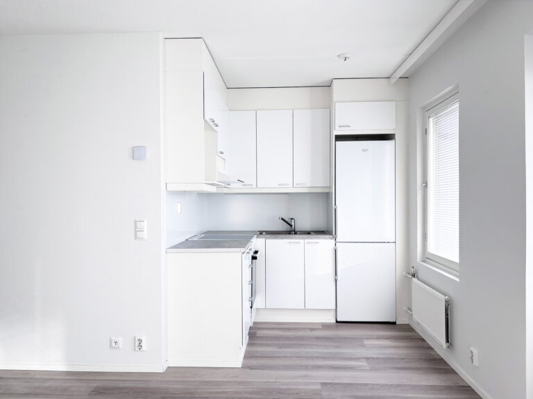 Keittiötilassa on induktioliesi, liesikupu, jääkaappi/pakastin, tilavaraus mikroaaltouunille. Kylpyhuone on kokonaan laatoitettu. Ikkunalliseen makuualkoviin mahtuu 140 cm leveä sänky ja vaikka pieni työpiste. Lattia vinyylilankkua.