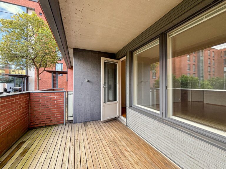 Tilava läpitalon kolmio, jossa ilahduttaa mm. oma sauna, 2 WC:tä ja avaralle sisäpihalle suuntautuva parveke.