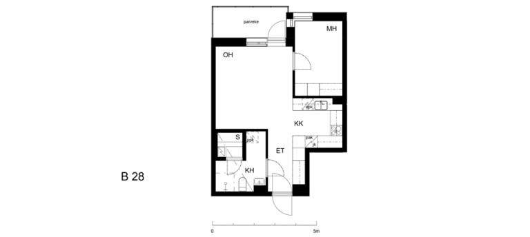 Näppärän kokoinen kaksio, jossa oma sauna, iso olohuone, mukavasti kaappitilaa ja lasitettu parveke.