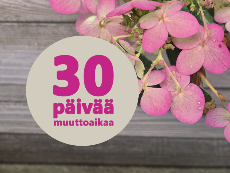 Saat 30 päivää ilmaista asumisaikaa, kun sopimuksesi alkaa viimeistään 1.12.2025. Etusi edellyttää 12 kk:n sitoutumista, jossa ensimmäinen mahdollinen irtisanomisaika on 11 kk:n kuluttua sopimuksen alkamisesta. Etu on voimassa uusille asukkaille, uusiin vuokrasopimuksiin. Etu ei koske käyttökorvausmaksuja (kuten esim. vesimaksut ja mahdollinen autopaikka).