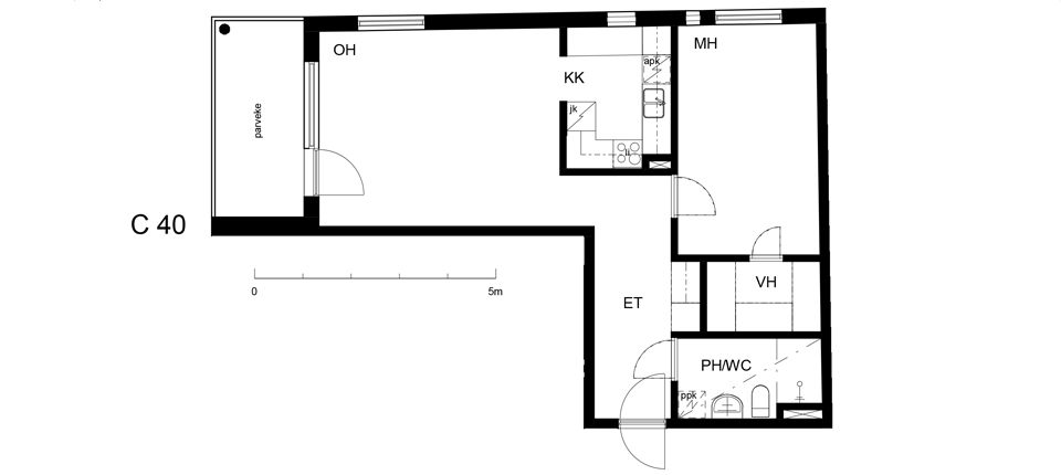 | Huoneiden lukumäärä: | kaksio |
